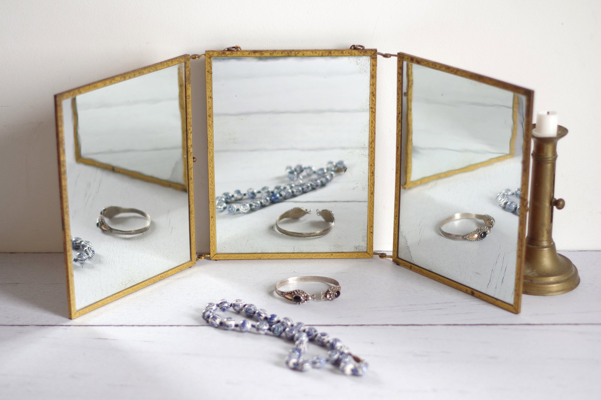 Miroir de barbier triptyque. Fin 19e siècle